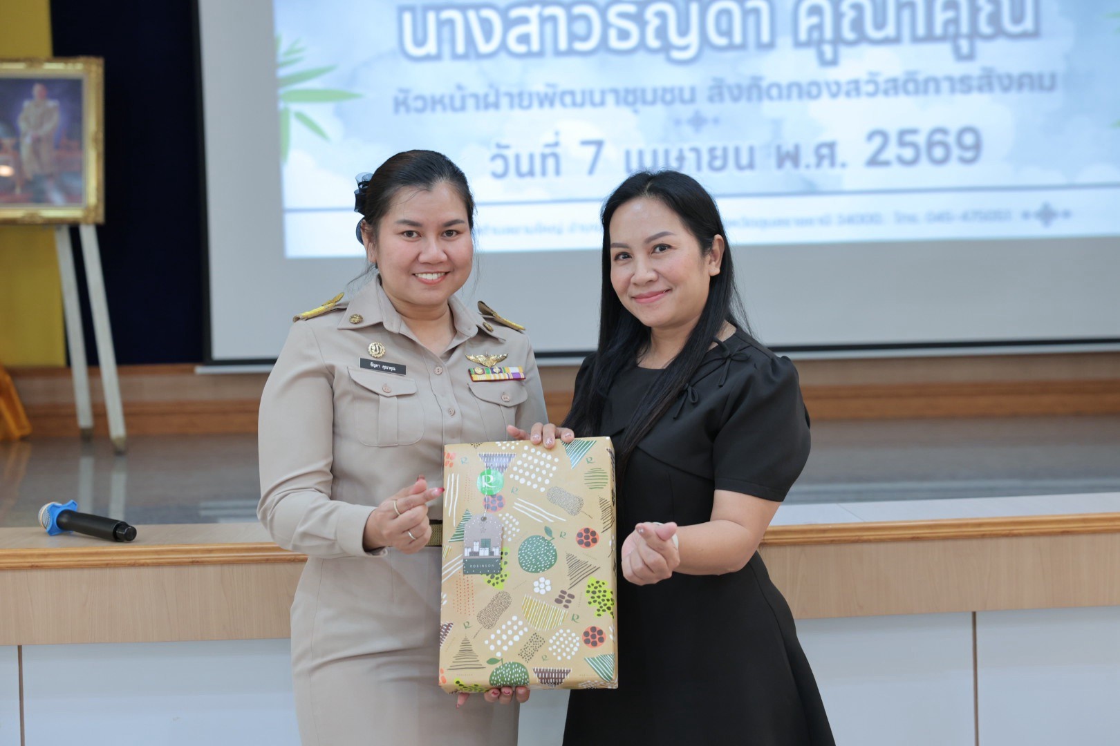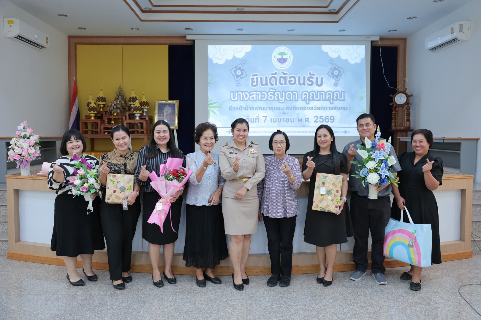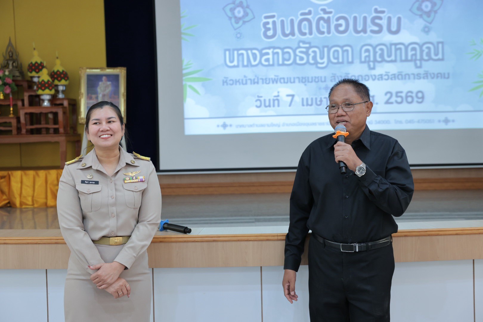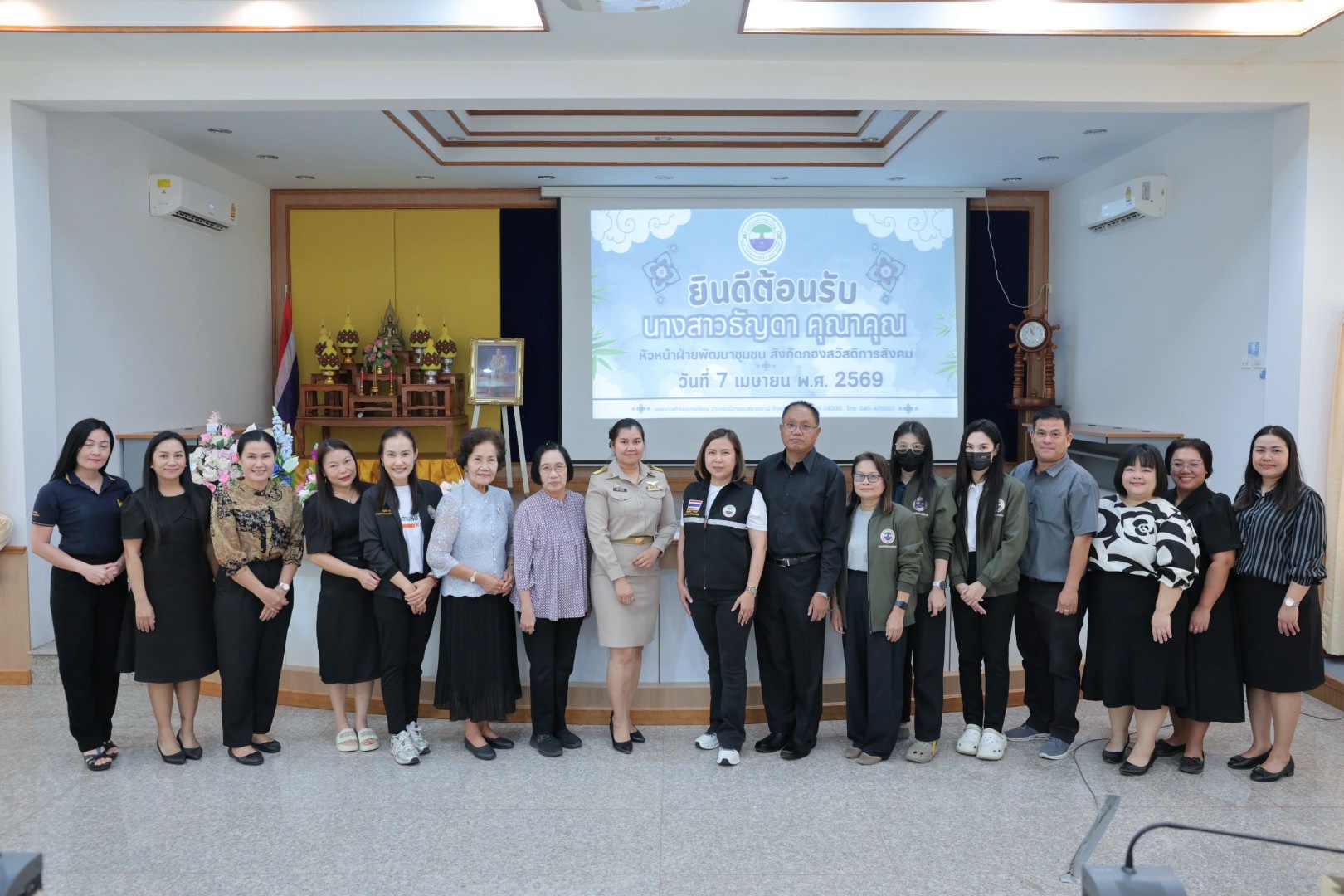 วันอังคาร, 07 เมษายน 2569 13:56วันอังคารที่ 7 เมษายน 2569 เวลา 10.30 น. นางสาวกัญญ์ภัทร์ วีระพันธ์ นายกเทศมนตรีตำบลขามใหญ่ พร้อมด้วยคณะผู้บริหาร หัวหน้าส่วนราชการ พนักงานเทศบาล ร่วมต้อนรับคณะจากเทศบาลตำบลหนองเลิงและแสดงความยินดีกับนางสาวธัญดา คุณาคุณ หัวหน้าฝ่ายบริหารงานสวัสดิการสังคม (นักบริหารงานสวัสดิการสังคม ระดับต้น) เทศบาลตำบลหนองเลิง อำเภอเมืองบึงกาฬ จังหวัดบึงกาฬ ที่ได้โอนย้ายมาดำรงตำแหน่ง หัวหน้าฝ่ายพัฒนาชุมชน (นักบริหารงานสวัสดิการสังคม ระดับต้น) สังกัดกองสวัสดิการสังคม เทศบาลตำบลขามใหญ่ ณ ห้องประชุมเทศบาลตำบลขามใหญ่ ชั้น 3 อำเภอเมืองอุบลราชธานี จังหวัดอุบลราชธานี