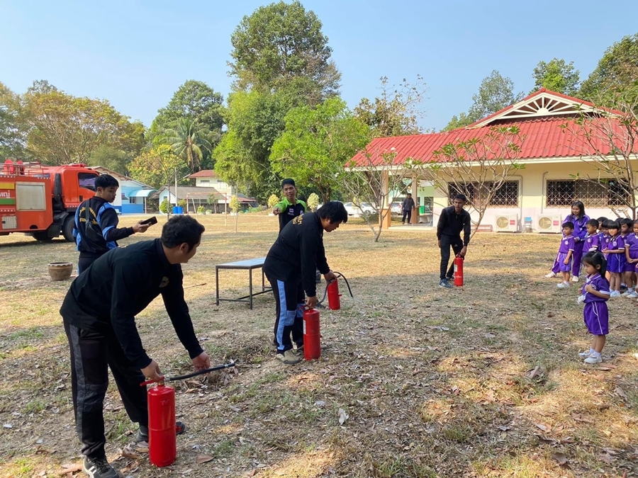 โครงการศูนย์เด็กปลอดภัย ซ้อมแผนอัคคีภัย สาธิตการใช้ถังดับเพลิง และการดับเพลิงเบื้องต้น