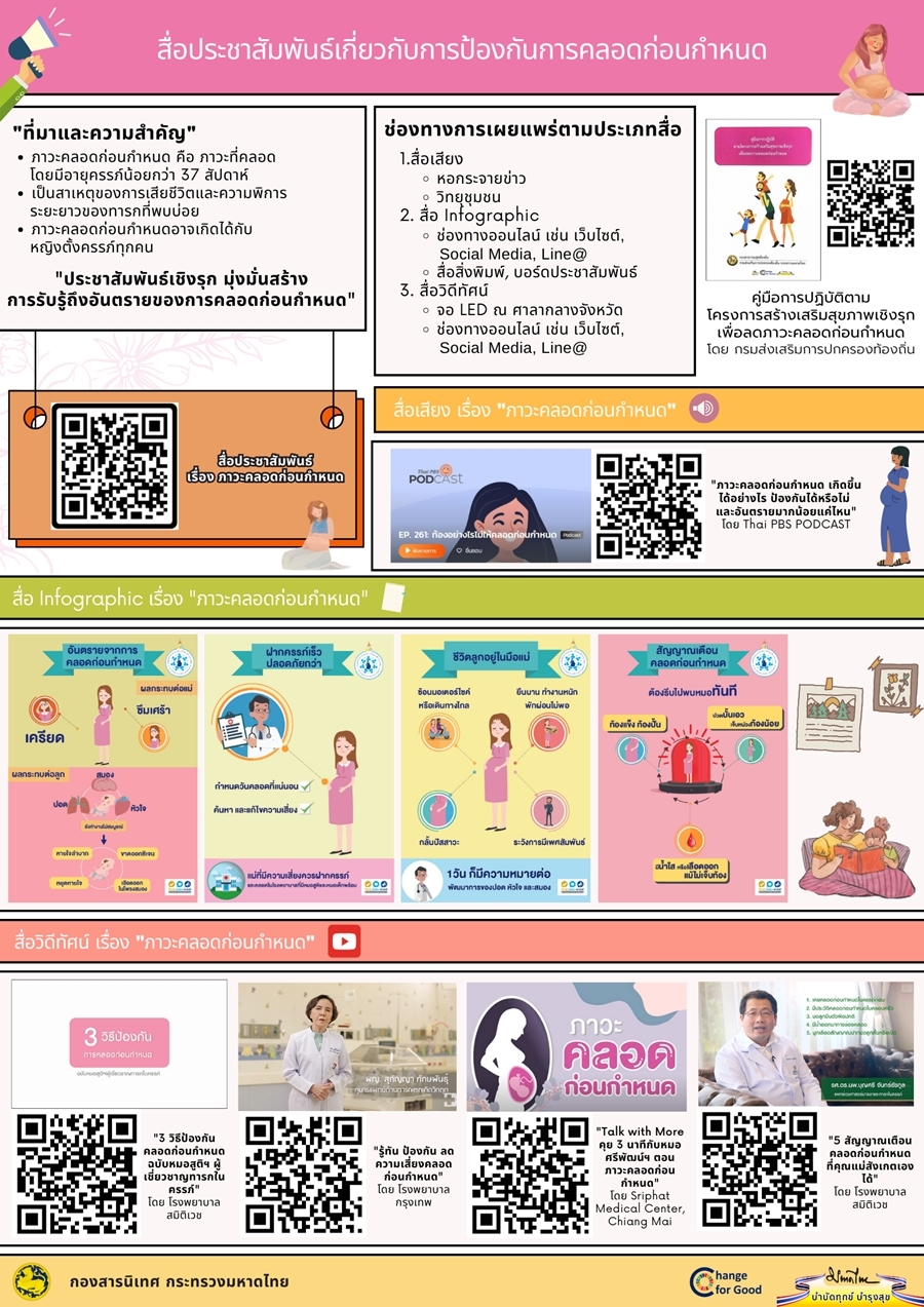 วันอังคาร, 15 สิงหาคม 2566 14:49โครงการเครือข่ายสุขภาพมารดาและทารกเพื่อครอบครัวไทย ในพระราชูปถัมภ์สมเด็จพระบรมโอรสาธิราชฯ สยามมกุฎราชกุมาร ร่วมกับกระทรวงมหาดไทย ได้ดำเนินโครงการสร้างเสริมสุขภาพเชิงรุก เพื่อลดภาวะคลอดก่อนกำหนด เพื่อขับเคลื่อนและบูรณาการการทำงานร่วมกันในระบบส่งเสริมสุขภาพและดูแลรักษาหญิงตั้งครรภ์ เพื่อลดอัตราการคลอดก่อนกำหนดของประเทศ เทศบาลตำบลขามใหญ๋ จึงขอประชาสัมพันธ์ "สื่อชุดความรู้เกี่ยวกับการป้องกันการคลอดก่อนกำหนด" รวมถึงการปฏิบัติตัวของแม่ การดูแลรักษาสุขภาพ การได้รับสารอาหารที่เป็นประโยชน์และเพียงพอตั้งแต่ก่อนตั้งครรภ์ ขณะตั้งครรภ์ ตลอดจนถึงเมื่อเกิดมาเป็นทารก เพื่อสร้างการรับรู้ การเข้าใจ เพื่อลดภาวะคลอดก่อนกำหนด และเพื่อลดอุบัติการณ์การคลอดก่อนกำหนด”