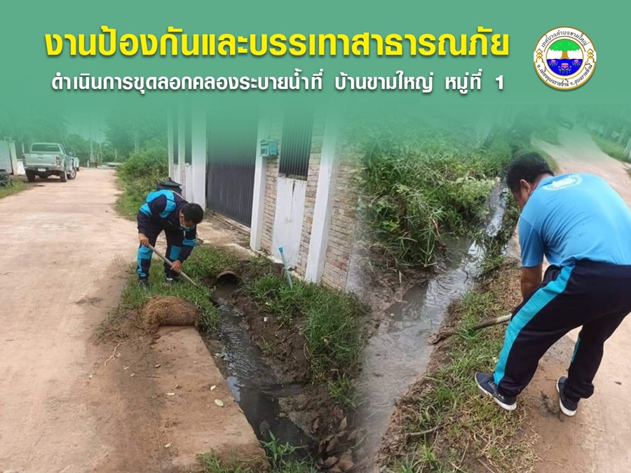 งานป้องกันและบรรเทาสาธารณภัยเทศบาลตำบลขามใหญ่ ลงพื้นที่ขุดลอกคลองระบายน้ำ ณ บ้านขามใหญ่ หมู่ที่ 1