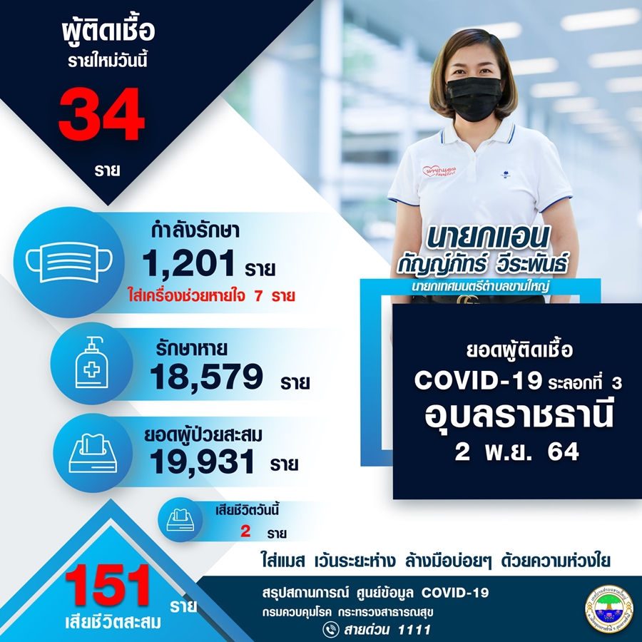 รายงานสถานการณ์โควิด-19 จังหวัดอุบลราชธานี ณ วันที่ 2 พ.ย. 64