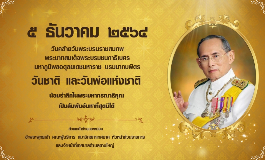 5 ธันวาคม 2564 วันคล้ายวันพระบรมราชสมภพ พระบาทสมเด็จพระบรมชนกาธิเบศร มหาภูมิพลอดุลยเดชมหาราช บรมนาถบพิตร