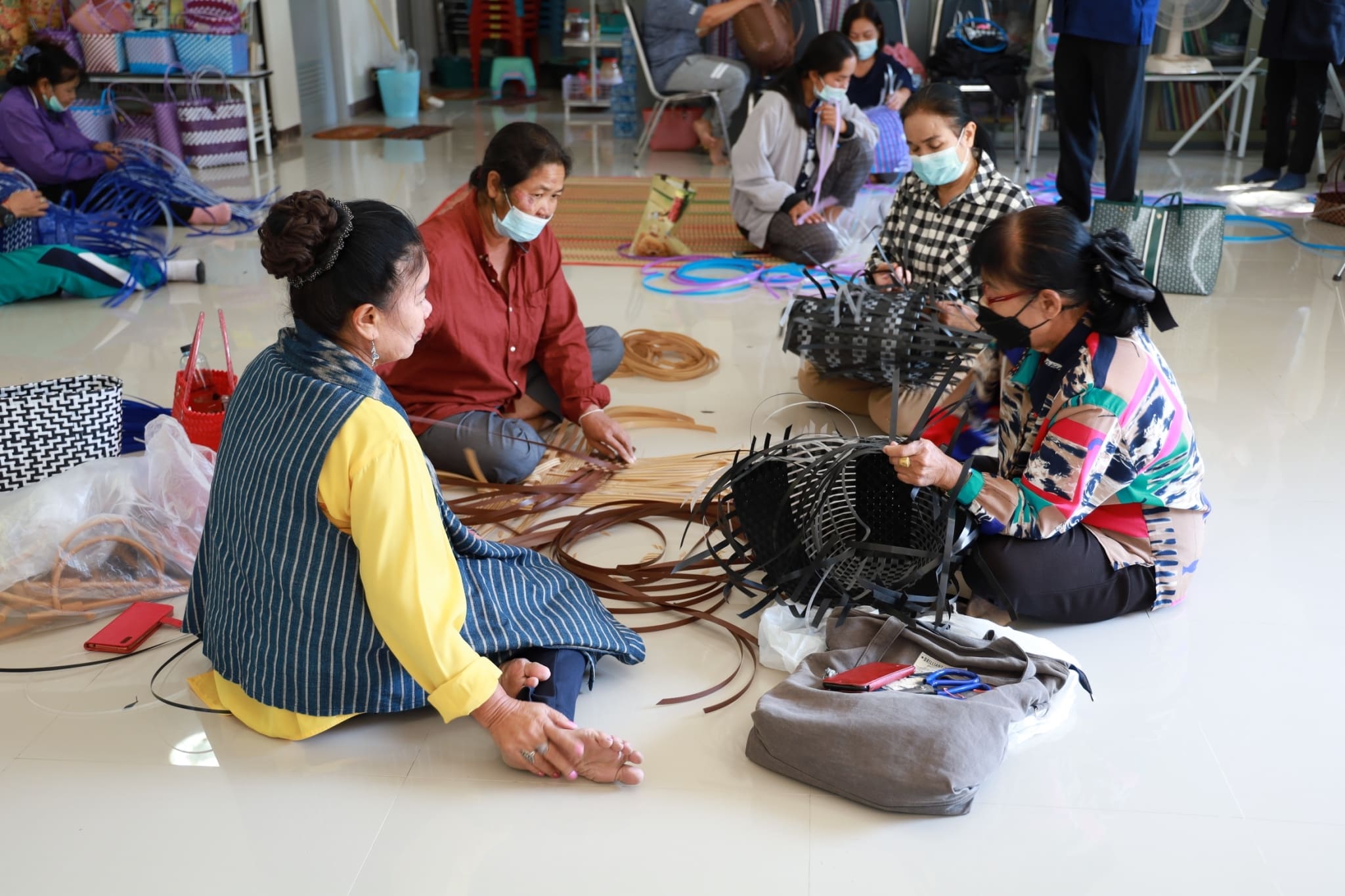 วันจันทร์, 20 ธันวาคม 2564 14:00วันจันทร์ที่ 20 ธันวาคม 2564 #นายกแอน นางสาวกัญญ์ภัทร์ วีระพันธ์ นายกเทศมนตรีตำบลขามใหญ่ มอบหมายนายบุญมั่น สายนะรา รองนายกเทศมนตรีตำบลขามใหญ่ พร้อมด้วยนางสาวณัฐรีน พิกุล เลขานุการนายกเทศมนตรีตำบลขามใหญ่ และเจ้าหน้าที่จากกองสวัสดิการสังคมเทศบาลตำบลขามใหญ่ ลงพื้นที่เยี่ยม กลุ่มสตรีเทศบาลตำบลขามใหญ่ ได้ฝึกอาชีพวัสดุจักสานจากเส้นพลาสติก ตาม โครงการพัฒนาทักษะอาชีพแก่สตรีและครอบครัวสู่ความยั่งยืนของสตรีและครอบครัว ณ ศูนย์พัฒนาคุณภาพชีวิตและส่งเสริมอาชีพผู้สูงอายุ (ศพอส.)เทศบาลตำบลขามใหญ่